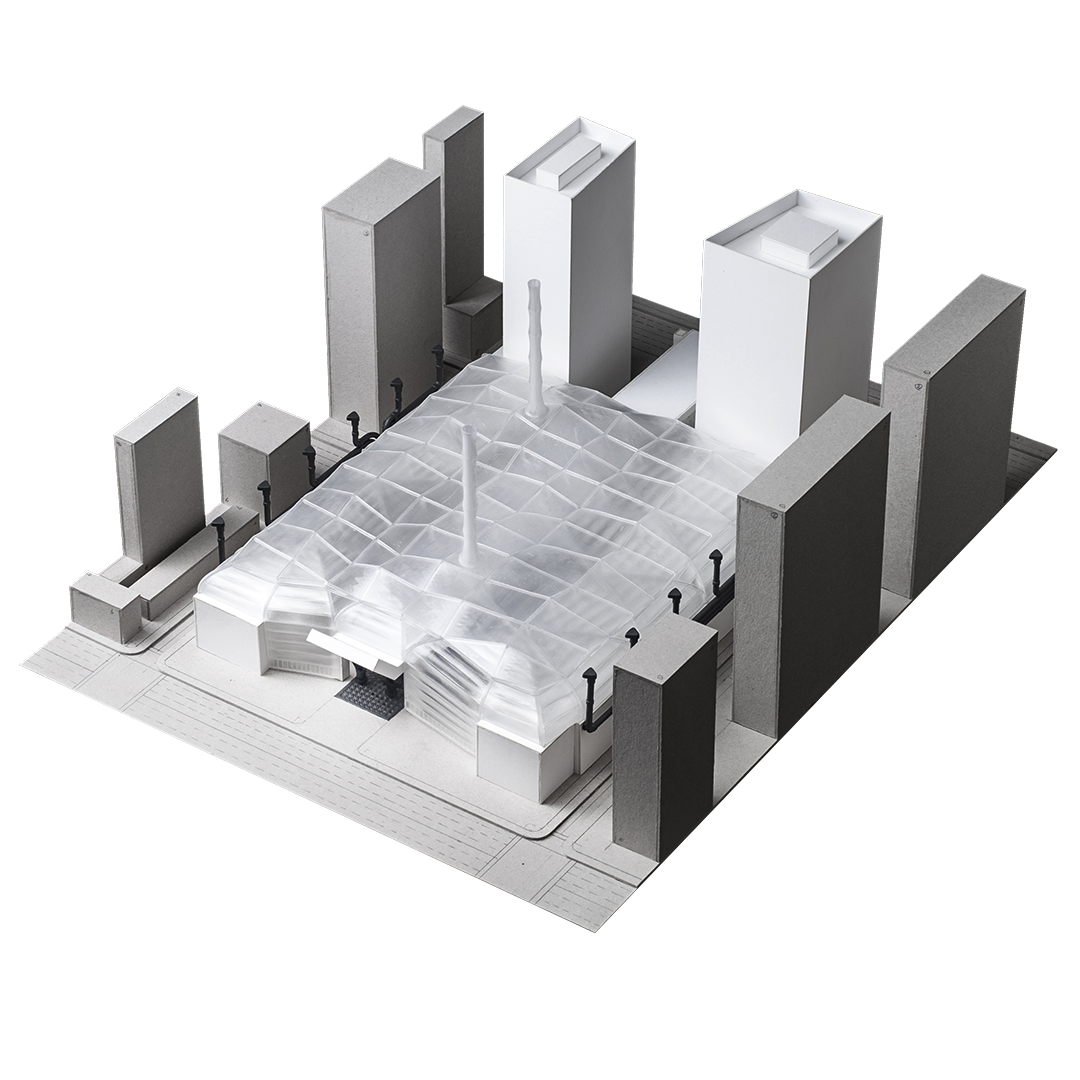 Collaborating with Danish cutting-edge air purification company Infuser, we proposed a new addition of a giant canopy over the entire block in the city. The design aims to create a naturally-driven air circulation system in which the pollutant will be removed by advanced air cleaning technology known as GPAO (Gas phase Advanced Oxidation). The system offers a sustainable design solution that has minimal carbon footprint and produces clean air in the scale of urbanism.
