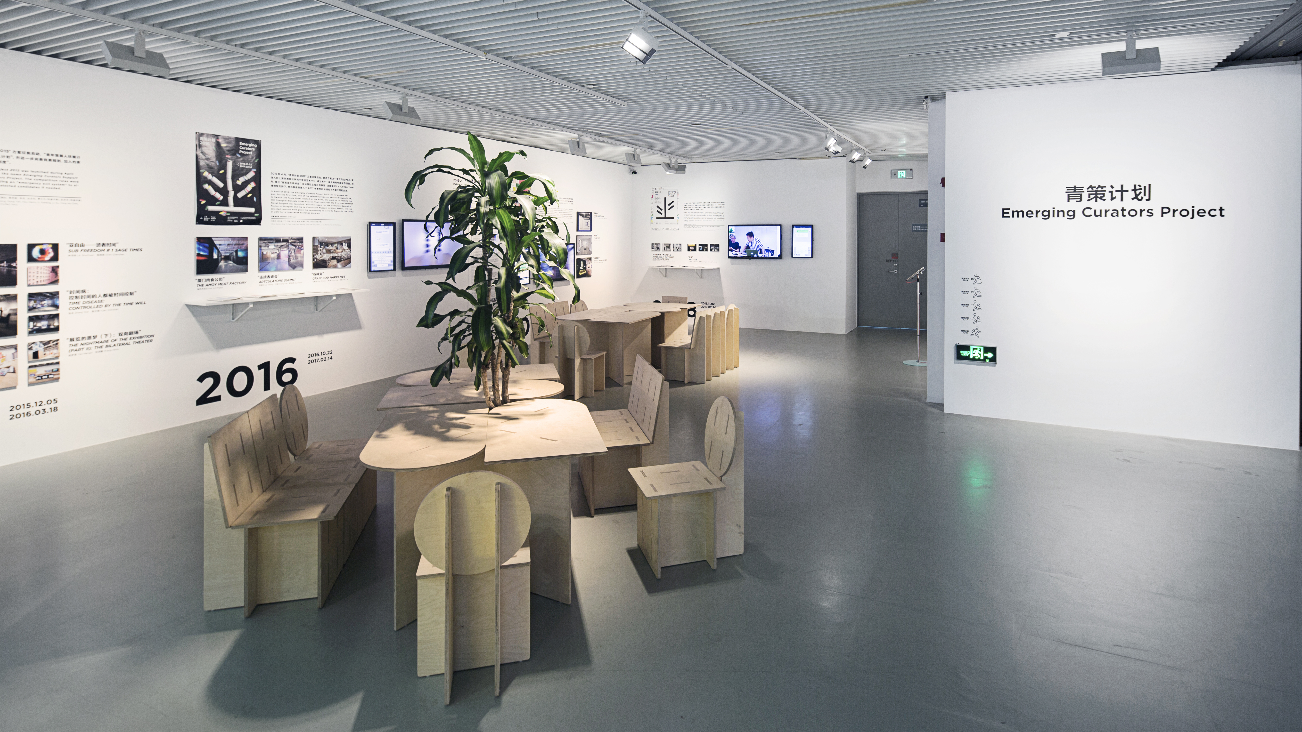 In 2018, Power Station of Art celebrated the 5th anniversary of the Emerging Curators Project with a special exhibition. As part of our design involvement, we created a set of CNC furniture consisting of two desks and sixteen chairs. Our choice of using plywood sheets with mortise and tenon joints allowed for easy fabrication with a CNC machine while providing a sustainable solution for the client. The final furniture pieces were produced by opendesk (︎︎︎)